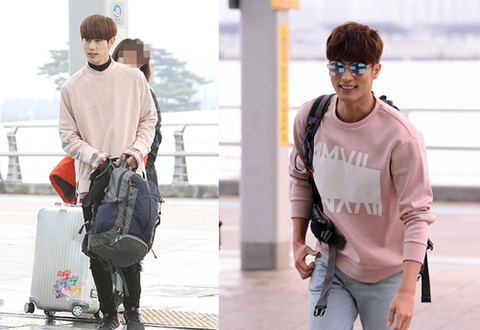 같이 출국하는 성훈쓰랑 깔맞춤 핑크 맨투맨으로