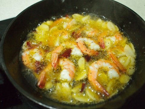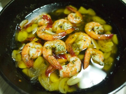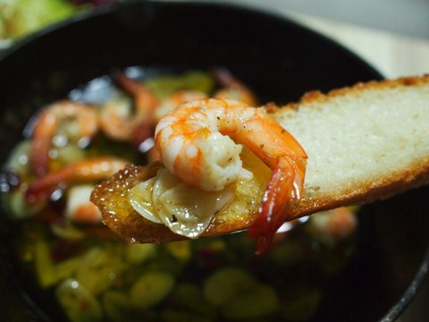 일종으로 새우(감바스)와 마늘(아히요)을 오일에 구워 낸 요리로