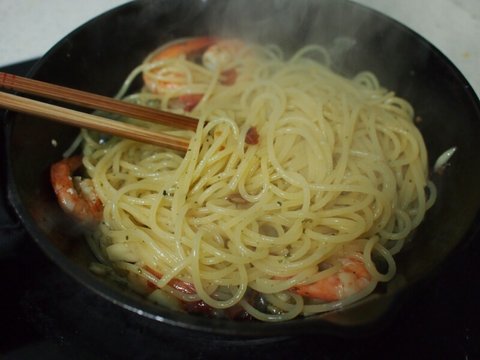 저 진한 오일에 파스타를 말았는데 어찌 맛이 없으리오.