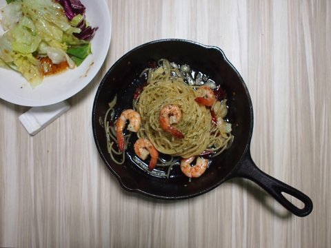 새우를 추가하고 새우가 익을때까지 잘 끓여주고, 허브가 있으면 좋겠지만 없으니까