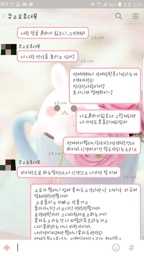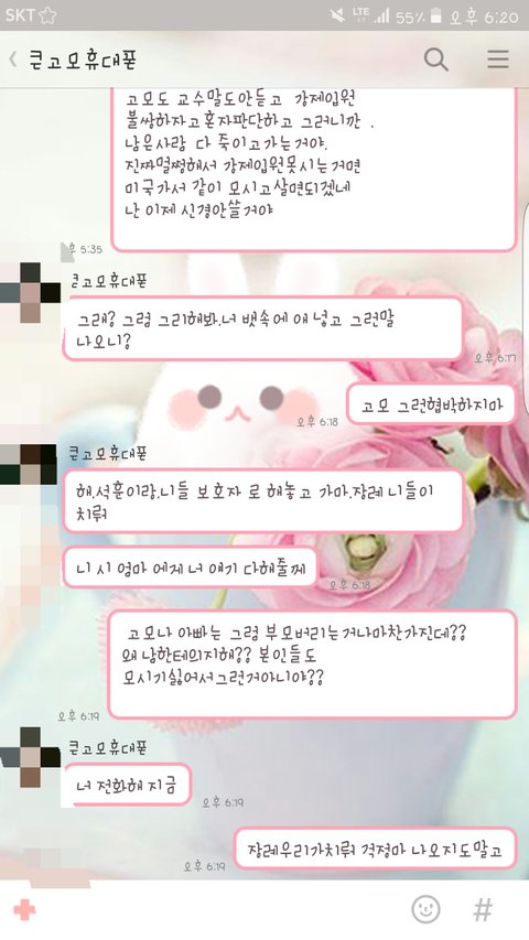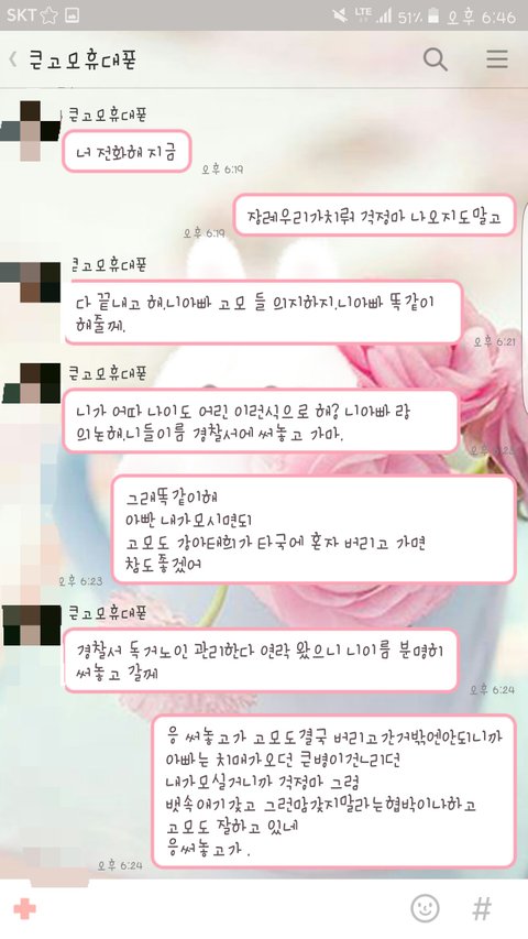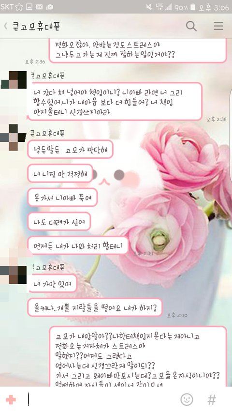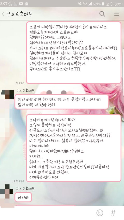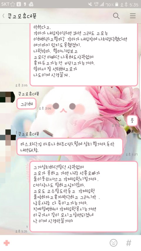그걸로 고모랑 카톡으로 대판싸웠어요.