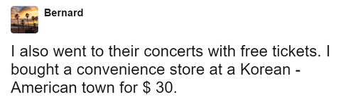 나 역시 공짜티켓으로 그들의 콘서트를 다녀왔다. 한인타운에 있는 편의점에서 30달러 어치를 사고 얻었다.