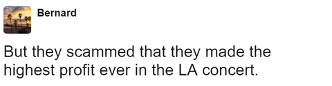 그러나 그들은 LA콘서트 역사상 가장 높은 수익을 올렸다고 사기쳤다.