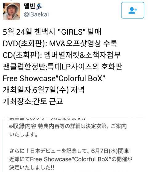 5월 24일 첸백시 "GIRLS" 발매..