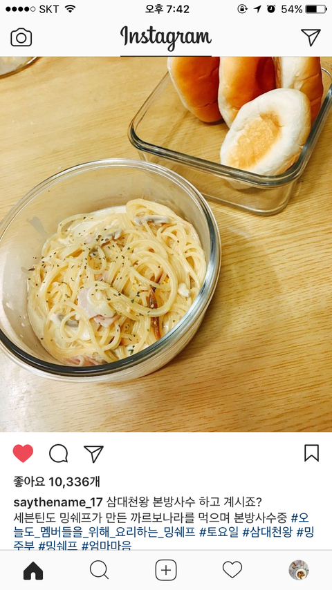 밍규가 만든 까르보나라 먹으면서 3대1000킹 본데 ㅠㅠㅠㅠ