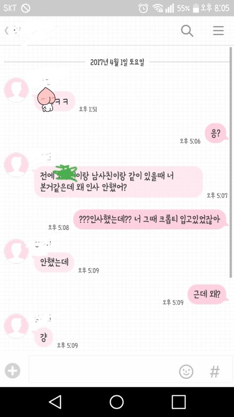 저한테 톡건친구와 다른친구가 같이 지나가길래