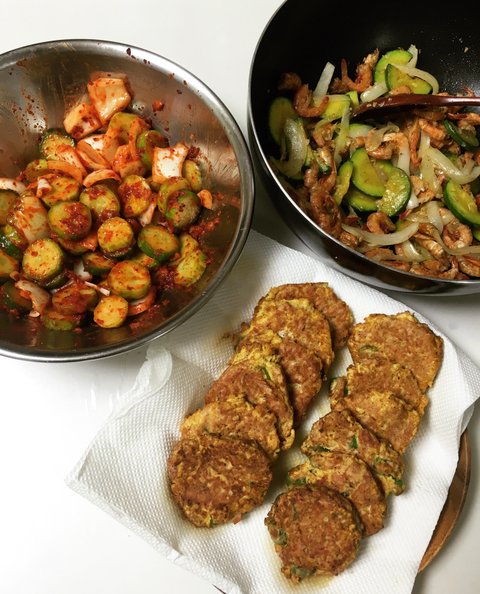오이무침 건새우호박볶음 참치전