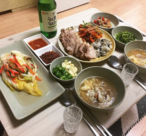 굴보쌈 백김치 북어콩나물국