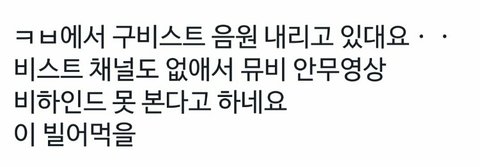 건드릴게 따로있지 지금 우리 추억들을 지운다는거잖아. ㅅㅂ 지들 돈벌이 해준게 누군데 지금 영상을 다 지운다고 ㅈㄹ하는거임? 이건 아니잖아. 그렇다고 우리가 영상 다 옮기면 신고 넣어서 못보게 막아버리겠지 시바새끼들이. 진짜 이건 아닌거 같음..;; 그동안 우리가 그 비하인드 영상이라도 보면서 끙끙 살아온 추억들 다 지운다고? ㅂㅅ같은 소리지. 애들 물병새우기 한거 동운이 떡볶이 먹고 싶다 소리친거 등등 다 못보는거임. 뮤비도 더이상 못봄. 뱃걸, 쇼크, 숨, 미스테리, 픽션, 아밤, 미드나잇, 카페인, 쉐도우, 플라워, 굿럭, 12시30분, 예이, 리본 이 노래들 안무영상부터 뮤비까지 다 못본다니까? 우리가 안무영상 받을려고 엄청 뮤밍 했었잖아... 근데 그만큼 찍었는데 영상 안올려주고.. 진짜 그거 생각만 해도 눈물 나는데 그때 일부터 다 지워져도 좋아? 우리 진짜 어떡해 큐브 개쌍새끼인건 알았는데 진짜 마지막까지 이건 아니다..;; 음원까지 내리면 진짜 큐브 찾아갈거고