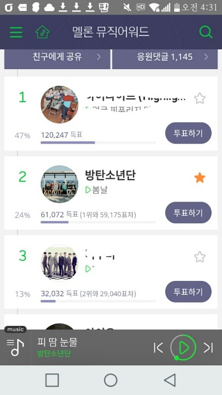 우리보다 음원쎈분들이 많으니까 최대한 투표수라도 많이 늘려보자♥ 화이또