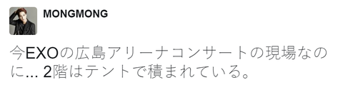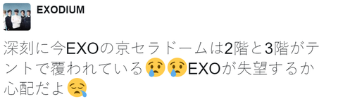 심각해 지금 엑소의 쿄세라돔은 2층과 3층이 천막으로 덮혀있다. 엑소가 실망할까봐 걱정된다.