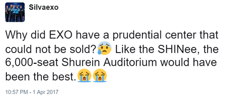 왜 엑소는 다 팔리지도 않을 프루덴셜 센터를 대관한거지? 샤이니처럼 6000석 규모의 슈라인 오디토리움이 제일 적당할텐데