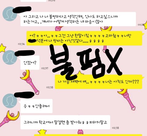 나 - ㅋㅋㅋ아니..ㅋㅋ(싸운애)랑 너네랑 친하니까 걔가 불편해할것같기도하고해서..ㅋㅋㅋㅋㅋㅋ