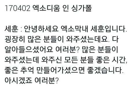 170402 EXO'rDIUM in SG 오프닝멘트