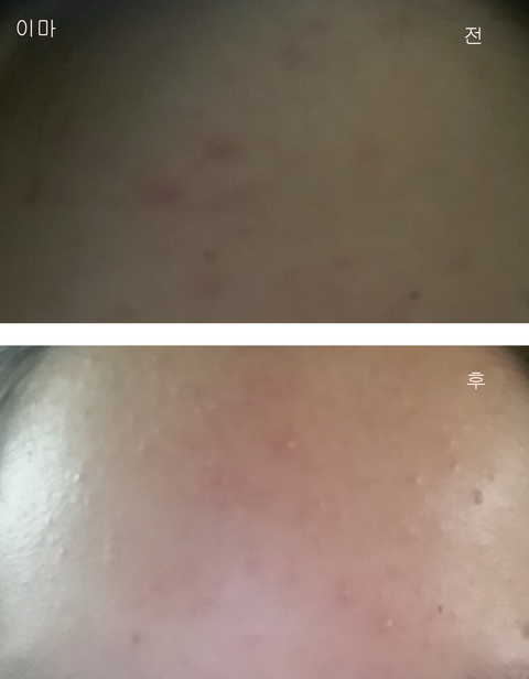 이마는 아직 여드름이 안들어간게 많아서 비교하기가 어려울수도잇어..!