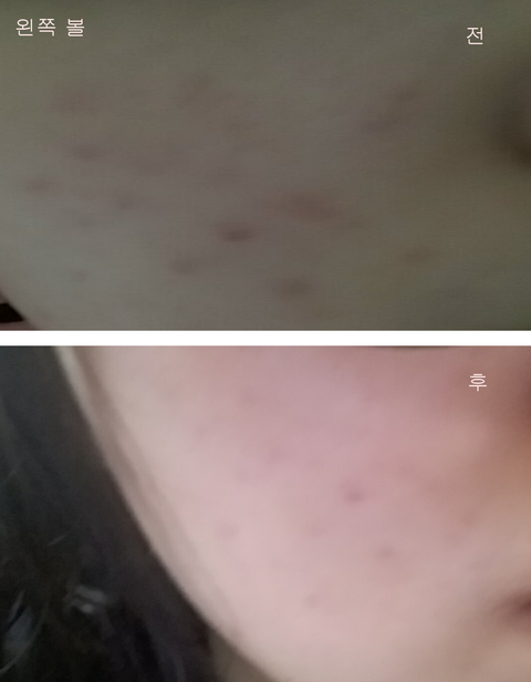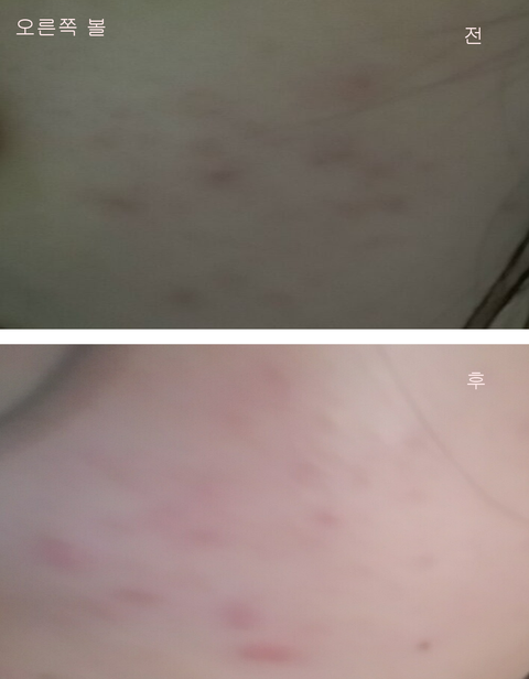 그래도 전후 비교할려고 여드름이 펑펑 올라와서 색소침착이 됫을때