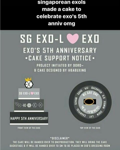 케이크는 원프로;:;덕션에게 전달될 것이다. 그들은 케이크를 백스테이지로 가져올 것이다. 그것을 스엠은 엑소 탈의실에 넣을 것이다