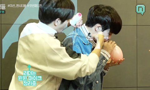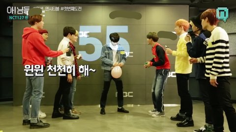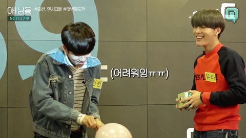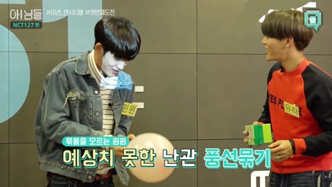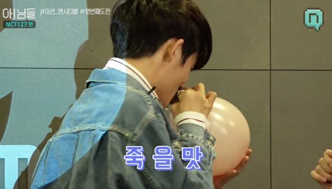 윈윈이 풍선을 불어서 묶고 유타랑 안아서 터트려야되는데 풍선이 잘안불어져서 힘들어함ㅠㅠ