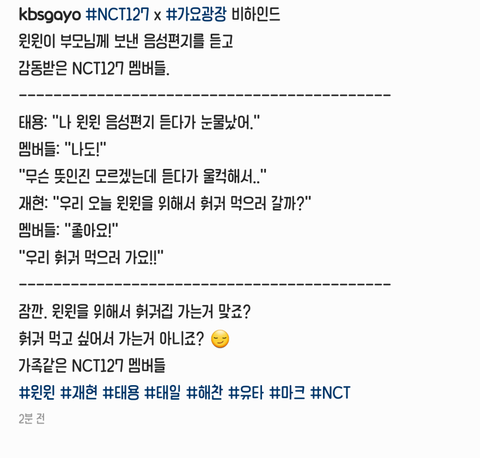 옆에서 보는 멤버들은 급할법도 할텐데 하나같이 괜찮다면서 윈윈이가 혹시나 미안해하지않게 다독여주는중