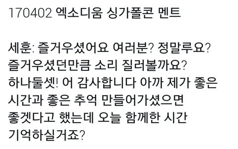 170402 EXO'rDIUM in SG 엔딩 멘트