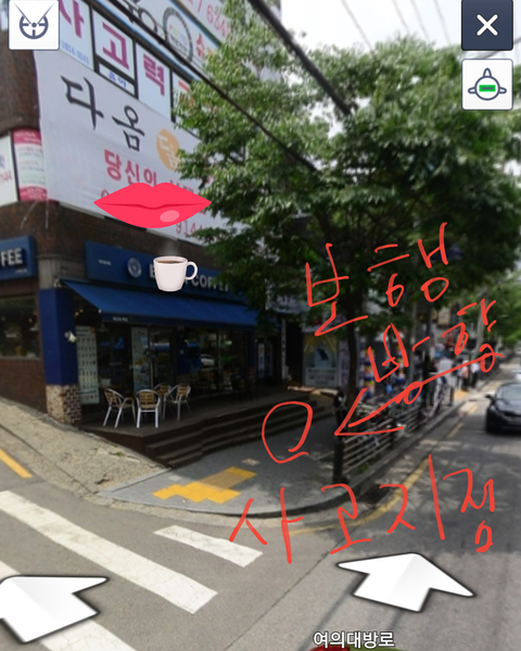 1. 본인이 친구와 둘이 인도로 걷고 있었음.