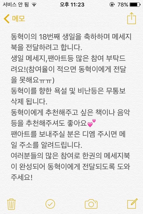 3월 초부터 생일기념으로 해찬이한테 줄 메세지북을