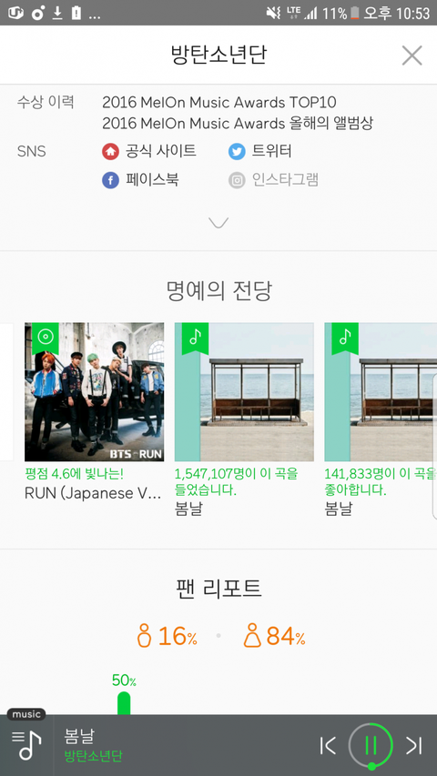 ㅋㅋㅋㅋㅋ방탄소년단 봄날 중복제외 이용자수 150만명 넘어서 명예의전당올랐어! 그냥 팬들 스밍빨이라고 하는사람들 보라고 ㅇㅇ