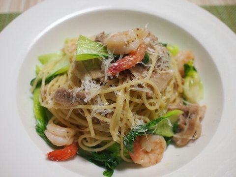 요건 냉장고정리를 위해 만들어본 '삼겹살새우청경채오일파스타'입니다. 이름에 이미 써있듯이 ㅎ 오일파스타에 그냥 대패삼겹살과 새우와 청경채를 추가했었습니다. 맛은 만족만족.