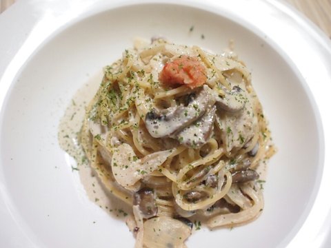 이건 '명란크림파스타'입니다. 오일파스타에 질렸다면 가끔은 크림파스타도 괜찮죠 ㅠ 근데 저는 오일파스타성애자라서.. 그래도 감칠맛이 대박인 명란크림 파스타... 굿굿..