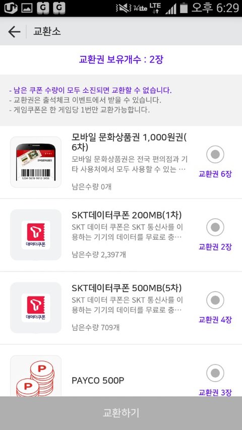 겜박스에서 겜쿠폰 받아 쓰다가 교환권이 2장 모였는데