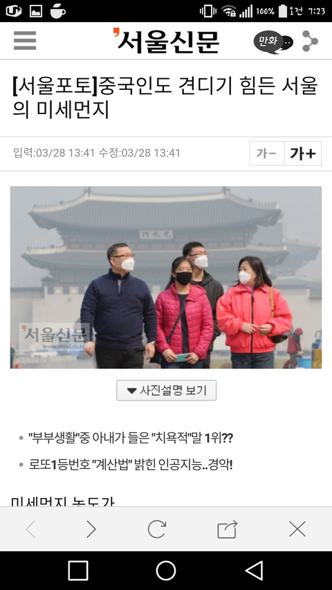 추천 좀 눌러줘!! 모두 중국발 스모그를 막아내자!!!