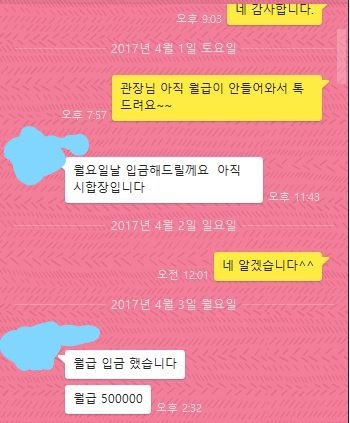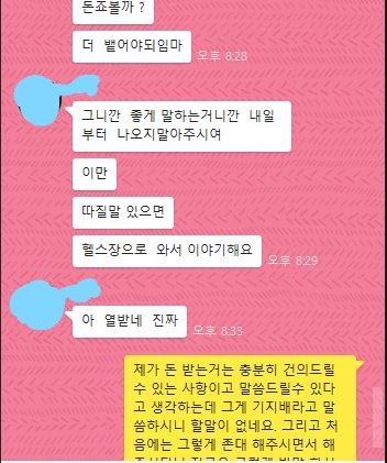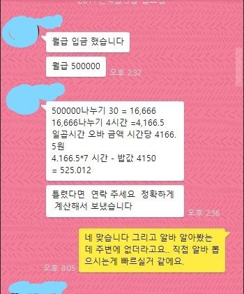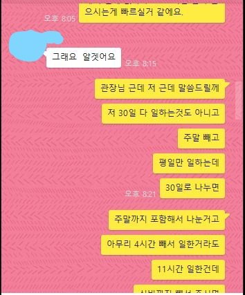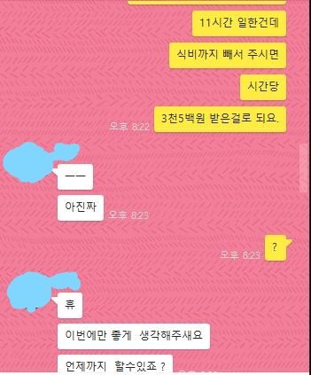 저는 최대한 좋게 좋게 할려고 했는데..식비까지 빼버리고 저런식으로 말하니 너무 기분이 나쁘네요..지금도 저거에 대한 답장이 없는데 이거 신고 가능할까요?