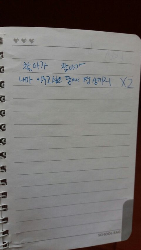 내 방 정리하다가 발견했는데 아 미친 ㅋㅋㅋㅋㅋㅋㅋㅋㅋㅋㅋㅋㅋㅋㅋㅋㅋㅋㅋ이때 대체 무슨생각으로로 적었지?? 아마 쇼미같은거 보고 ㅈㄴ 감명받아서 적은듯........ 거의 약 4~5년 책으로 추정됨ㅋㅋㅋㅋㅋㅋㅋㅋㅋㅋㅋㅋㅋㅋㅋㅋㅋㅋㅋㅋㅋㅋㅋㅋ아 근데 이거 좀 잘쓴듯. 내가 win이 됐을때 그때나 되서 윙윙거리지마 날파리 같이~ 훠우 라임 오져버렸다~~~~~ㅋ