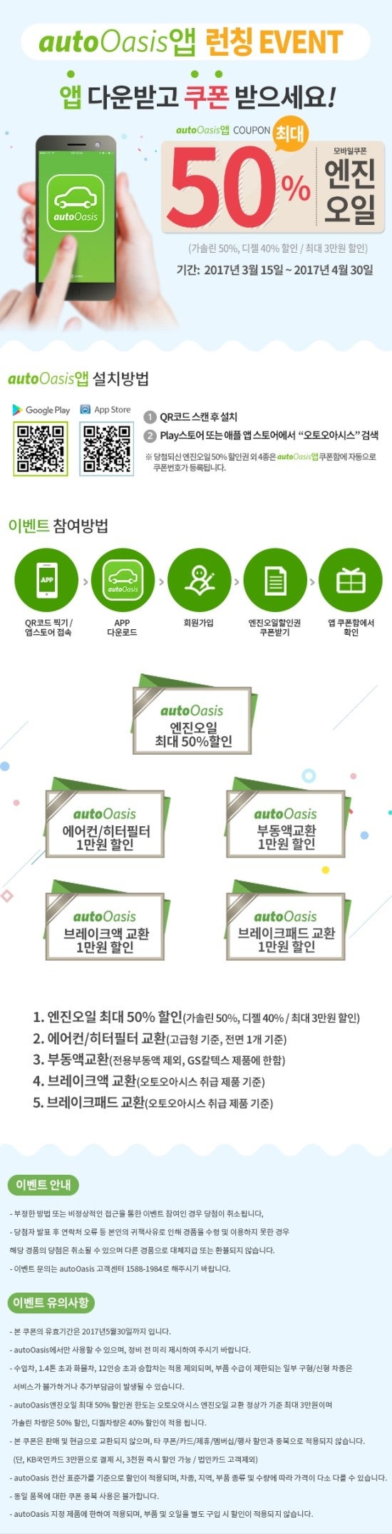 오토 오아시스 어플 런칭 기념으로 요즘 할인 행사 많이 진행해서 할인 혜택이 빵빵하네요!