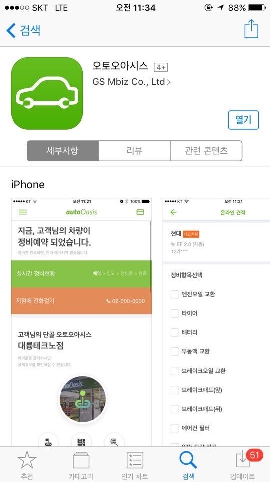 오토 오아시스 라는 어플인데 자동차 정비 예약하려고 사용해봤는데 엄청 편하더라고요~