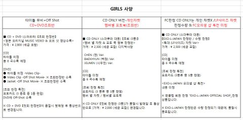 첸백시 일본 앨범 사양