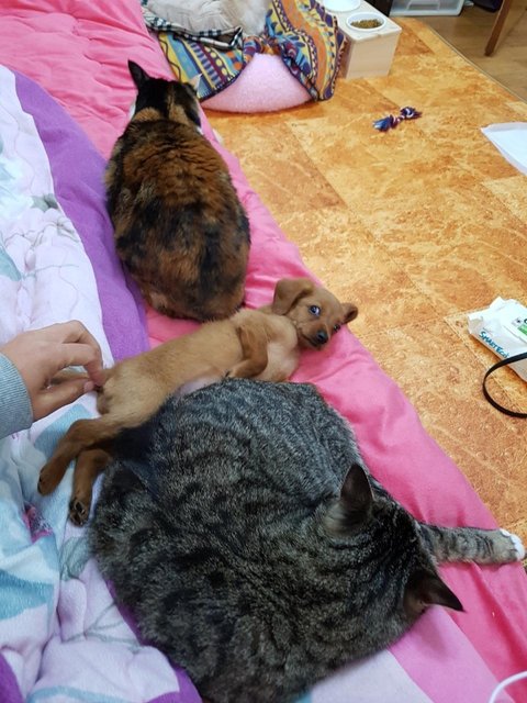 그러던중 추웠던 1월중 엄마가 새끼 9마리를 낳았고 추위에 새끼 7마리가 얼어죽고 2마리만 살아남았습니다.