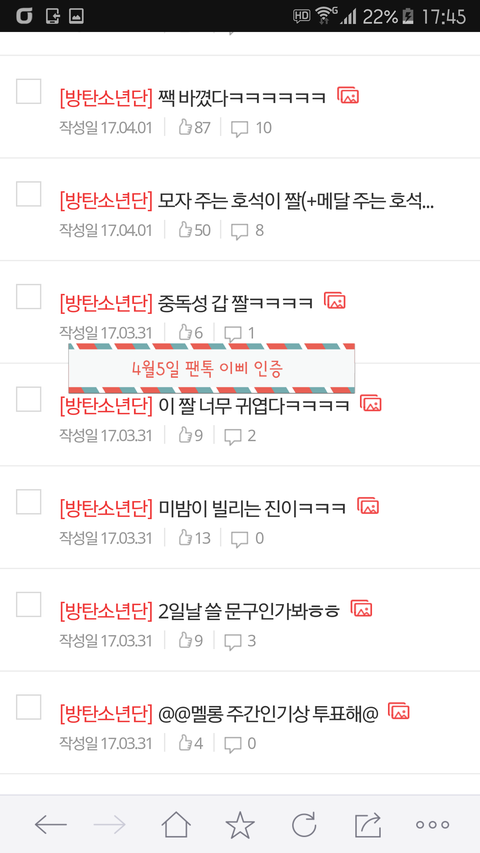 방.닷에서 오늘 불판연다니까 또 알려줄게