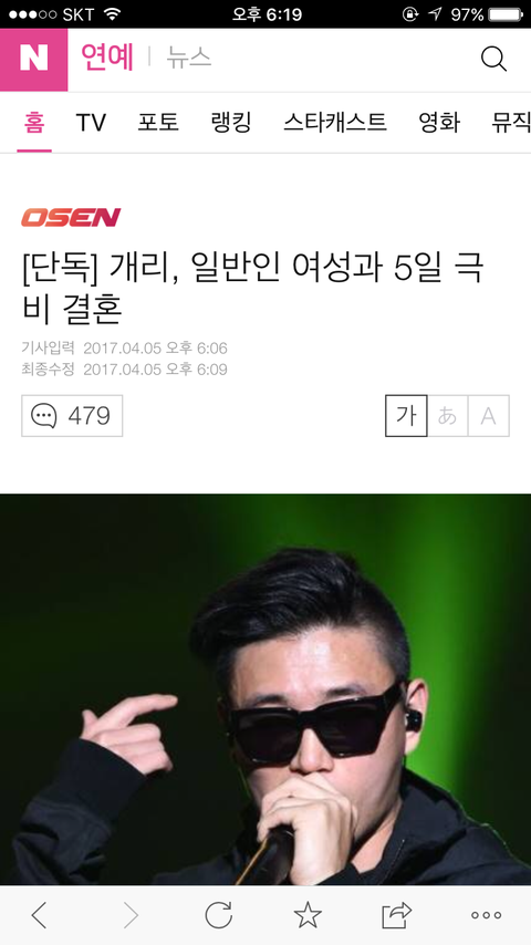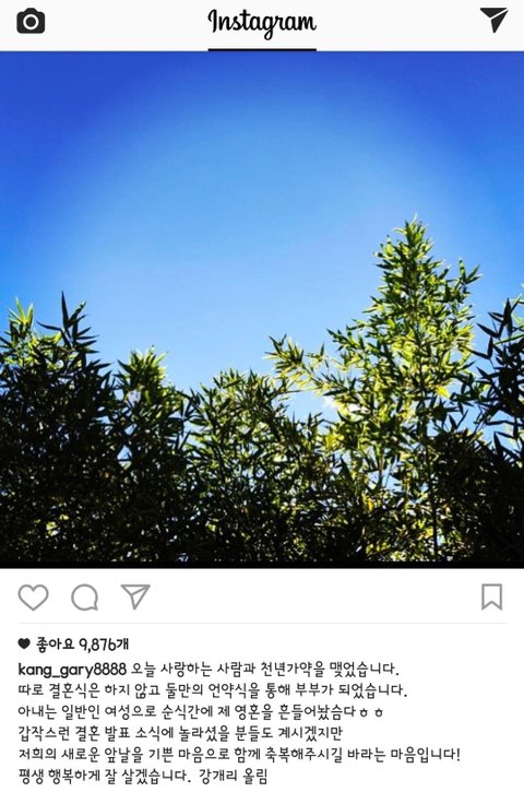 대박 개리 ㄹㅇ 결혼함 일반인이랑 조용히 연 맺었대
