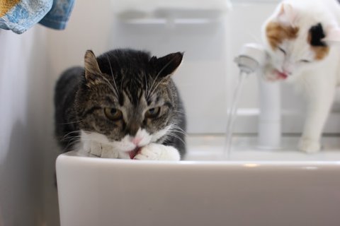 발병한 지 이틀 째부터 밥도 먹고 화장실도 가기 시작했어요. 잘 씹지도 못해서 한동안은 사료를 불려줬고요(습식은 안 먹더라고요. 평소에 먹던 사료만 먹으려 했어요.). 화장실은 다니기 쉽게 문을 뜯어줬어요. 삼일 째부터는 불리지 않은 사료도 먹을 수 있게 되었답니다. 그렇게 나나는 회복 중입니다. 아직 머리는 사진처럼 기울어 있네요. 이건 전정질환의 후유증으로 남을 수도 있다고 합니다.