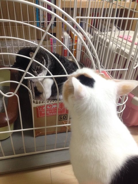 퐁타가 걱정이 되는지 계속 케이지 앞을 지켰어요. 이후에도 계속 퐁타가 나나를 돌보더라고요. 지금도 나나가 울면 퐁타가 저희보다 먼저 쫓아가요. 처음 데리고 왔을 때도 육아 스트레스를 받을 정도로 나나와 모모를 챙기더니, 퐁타는 정말 자기가 엄마인 줄 아나봐요. 참 든든했어요. 저희집 장녀 참 든든해요.