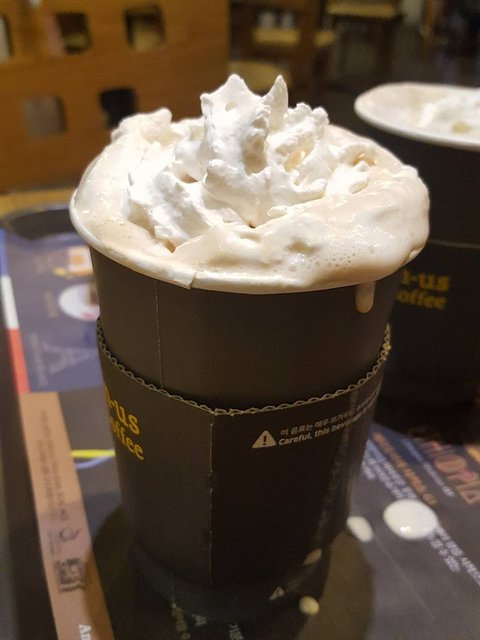 자리에 앉아서 기다리는데 진동벨이 울리고 동생이 커피를 가지고 왔는데