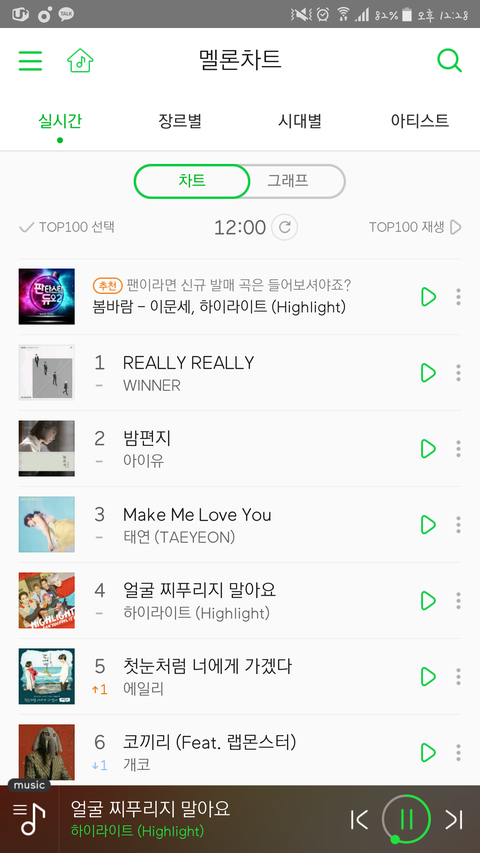12시차트 멜론 4위유지