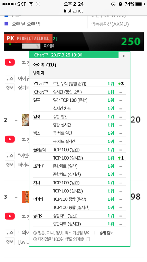 1. 아이유 - 밤편지 / 진입 1위