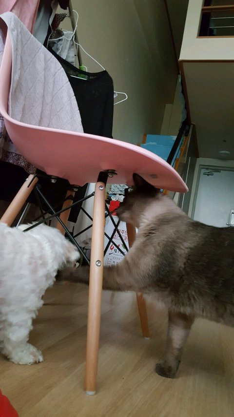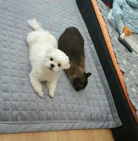 강아지랑 같이 자란 고양이는 마약방석을 좋아합니다ㅋㅋ냥모나이트
