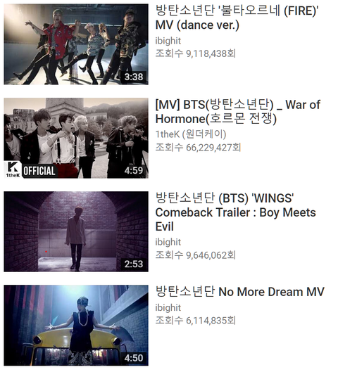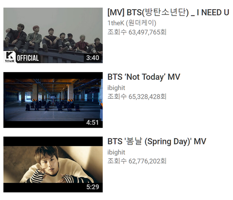 이 시각 뮤비 조회수