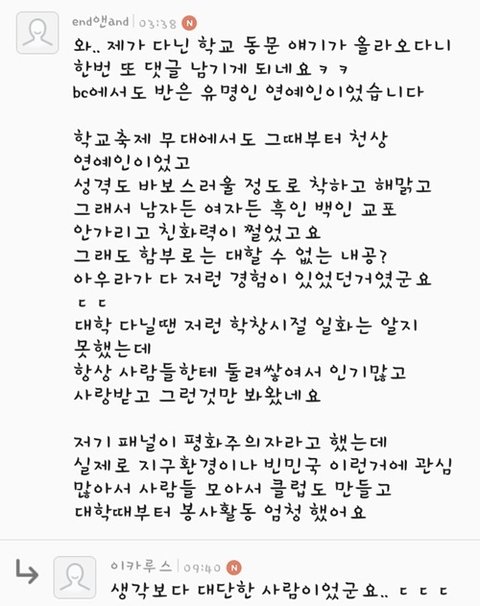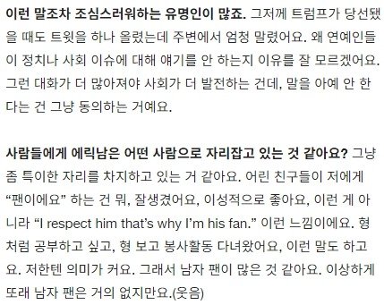 아...... 사랑받는거가 그냥 일상인 사람같아서 너무 부럽다........ 그냥 한국에서뿐 아니라 외국에서도 학생대표로 뽑혔던거 보면.. 인기 대단했구나... 바바라팔빈이 번호 따가고 데이트 신청하고 클로이모레츠랑 절친되고.. 가족들끼리 크리스마스에 밥까지 먹는다 하고.. 얼마전에 엠마왓슨이랑 인텁하는데 딴사람 얘기할때도 엠마가 엄청 스윗하게 쳐다보는데.. 막 진짜 내가 다 간질간질...ㅋㅋ