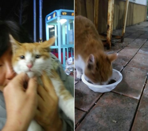 배가 고파 하는것 같아 캔을 주니 두개나 허겁지겁 먹고나서 그자리를 떠나지 않고 자신을 만지라 부비는 모습을