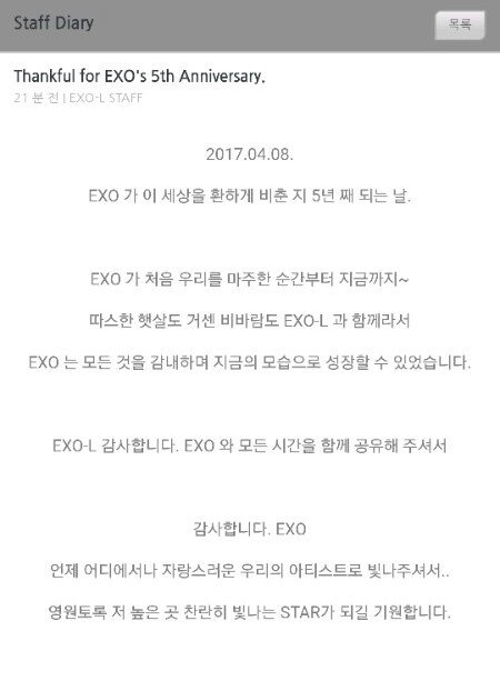 스탶다이어리 엑소 5주년 ㅊㅋ!