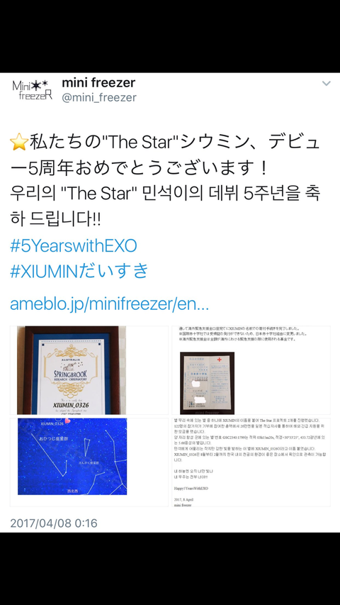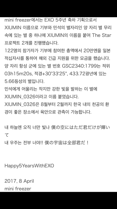 우와 너무 멋지다^^ 별을 선물받았어! xiumin 0326